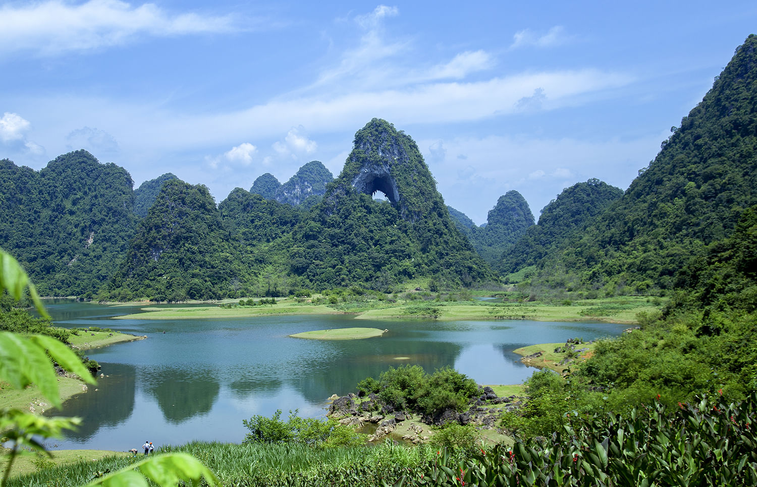 God's Eye Mountain (Núi Mắt Thần) is a stunning landmark in the Non Nuoc Cao Bang Global Geopark, famous for the 50-meter-wide circular cave that pierces its limestone peak, resembling a giant eye.